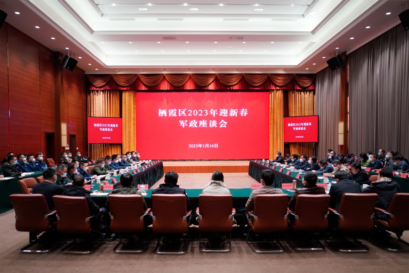 1月16日,栖霞区举行2023年迎新春军政座谈会,军地双方欢聚一堂,共叙鱼水深情,共话融合发展。