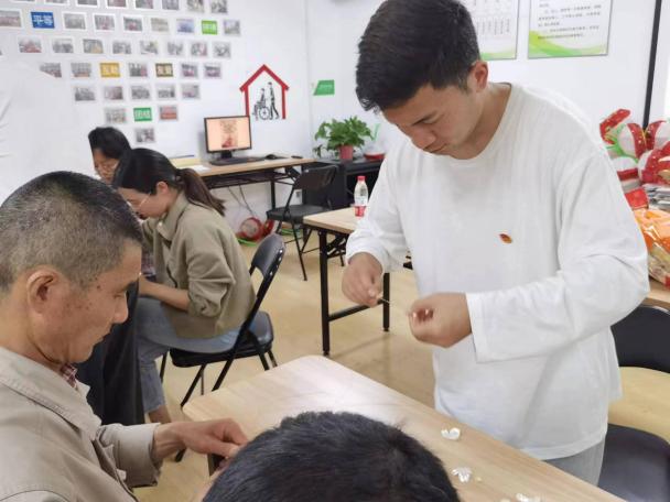 活动现场,团员青年们与康复患者们互动交流,详细了解他们的生活及康复情况,帮助患者们开展辅助性就业活动,并为他们送上益智玩具和零食大礼包。同时鼓励他们积极参加康复训练,保持良好的心理状态,争取早日融入社会。