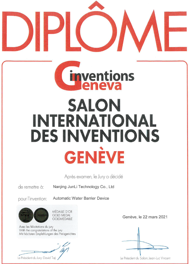 在第48届日内瓦国际发明展览会上,来自江苏南京的退役军人范良凯牵头研发的《水动力全自动防洪闸》项目得到了评审团和专家的一致认可,一举荣获此届日内瓦国际发明展最高荣誉——特别嘉许金奖。据悉,此次中国代表团共有130余个项目参展,而获此殊荣的仅3个项目。