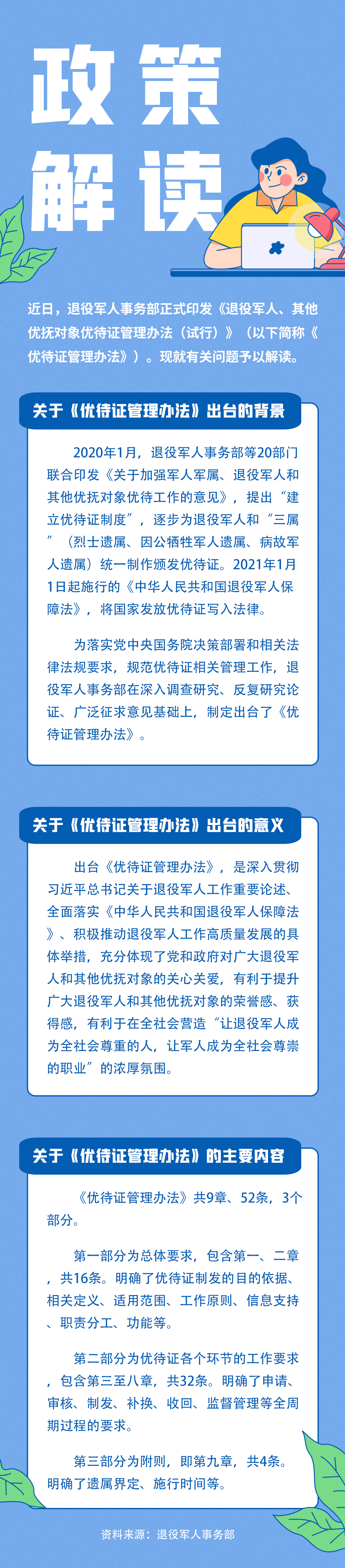 | 信息名称: | 图解||《退役军人、其他优抚对象优待证管理办法(试行)》政策解读 | ||