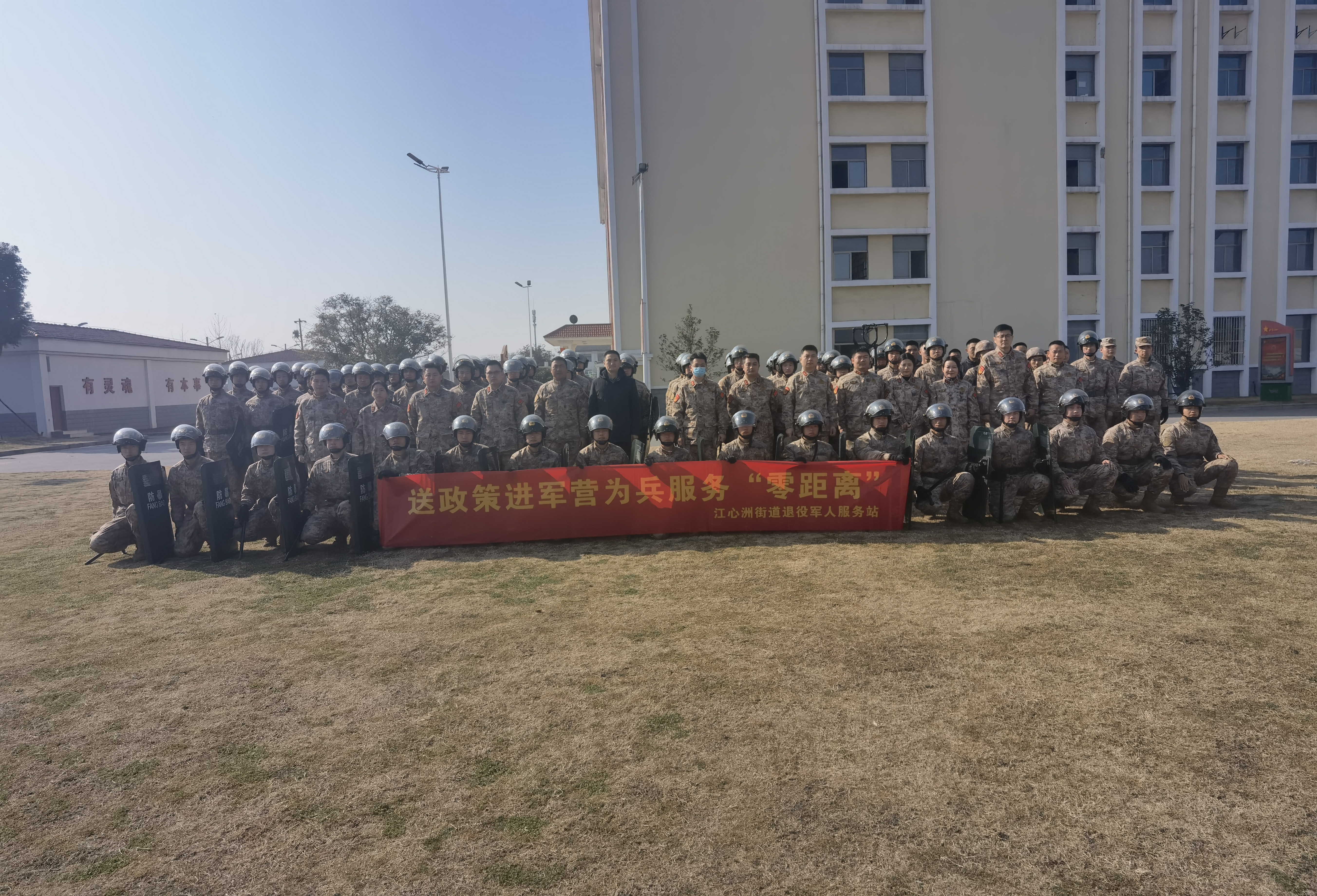 1月5日上午,建邺区江心洲街道退役军人服务站来到共建部队,开展“送政策进军营,为兵服务‘零距离’”活动。街道人武部部长与各社区退役军人服务站站长参加了本次活动。