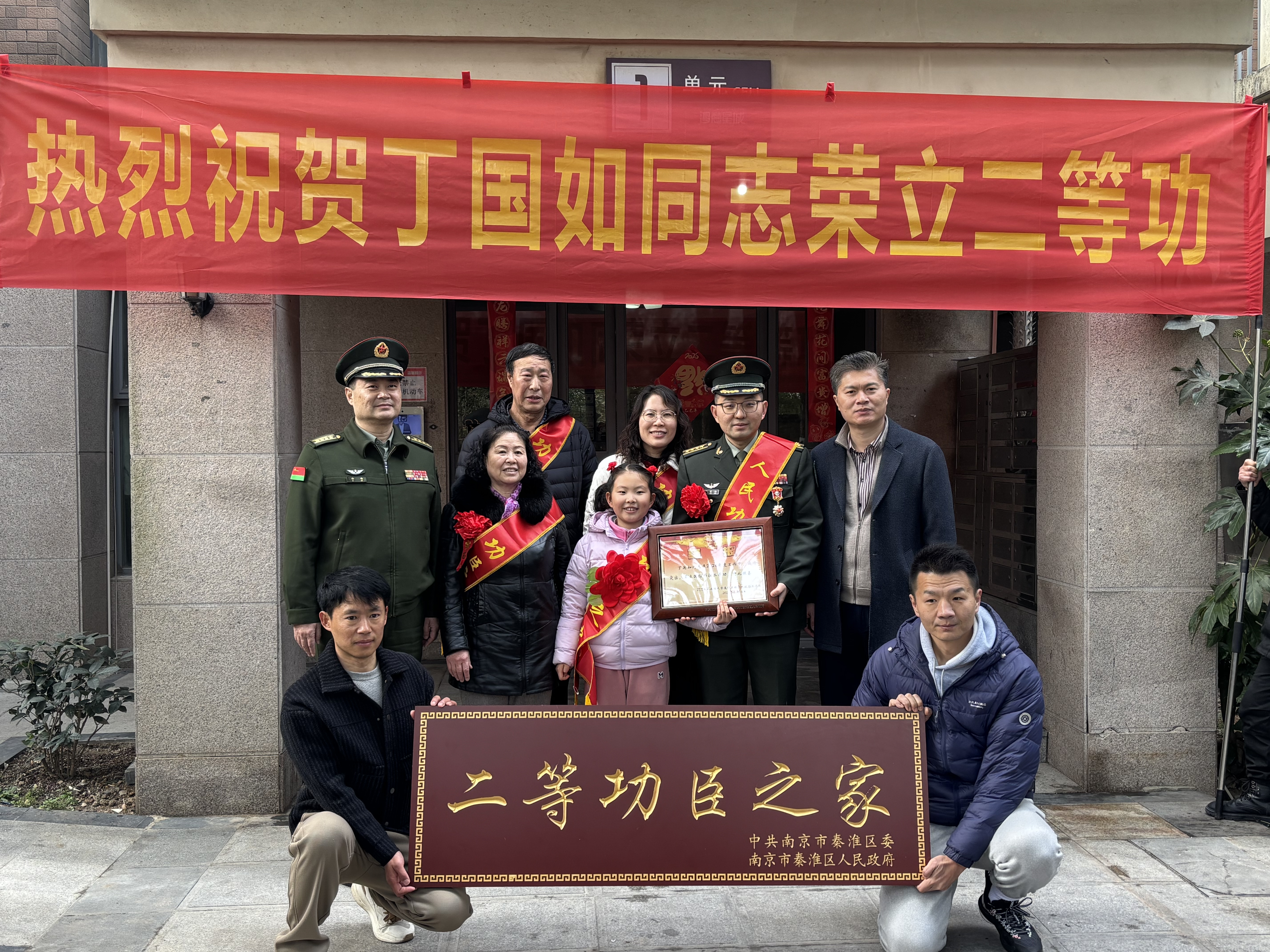 2月26日上午,秦淮区双拥办联合区退役军人事务局、区人民武装部、光华路街道办事处以及陆军工程大学通信工程学院相关领导组成军地送喜队伍,喜气洋洋地前往现役军人丁国如家中,为其送上个人二等功的喜报与“二等功臣之家”的牌匾。