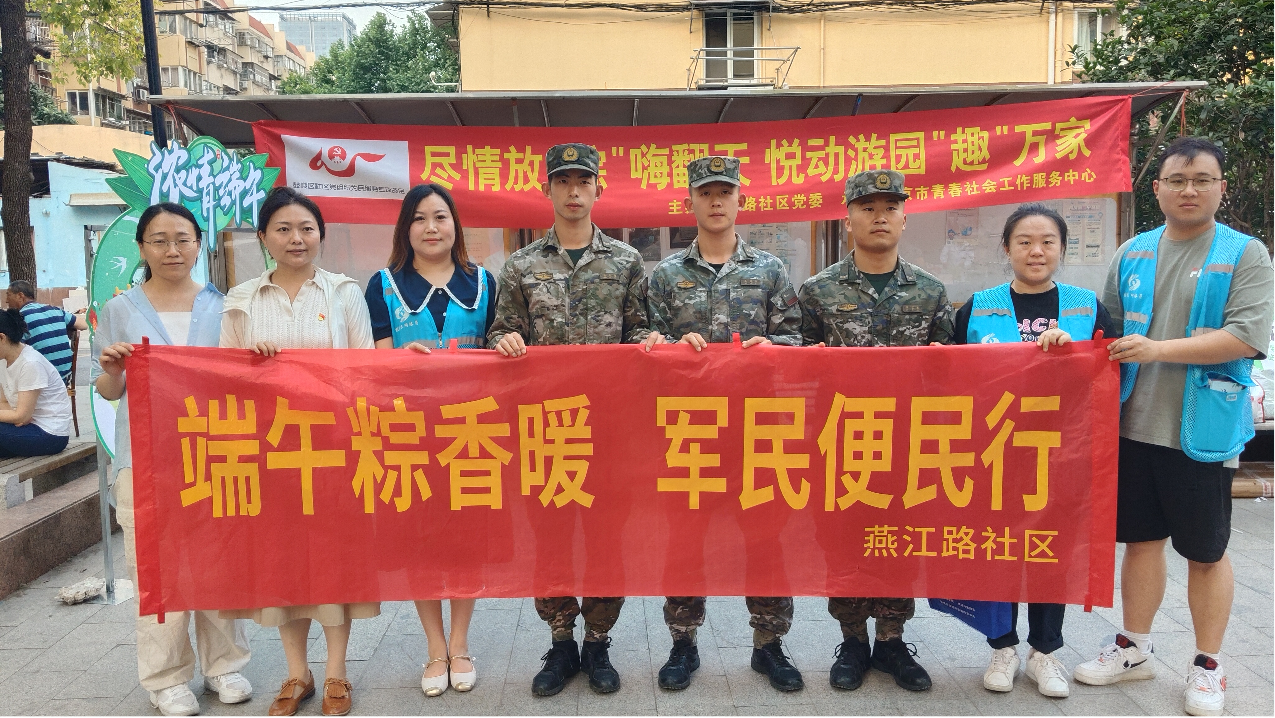 鼓楼区燕江路社区工作人员带着精心准备的粽子和咸鸭蛋,走进驻地部队的营区,将一份份饱含心意的慰问品送到官兵手中,并向他们致以节日的问候和崇高的敬意。