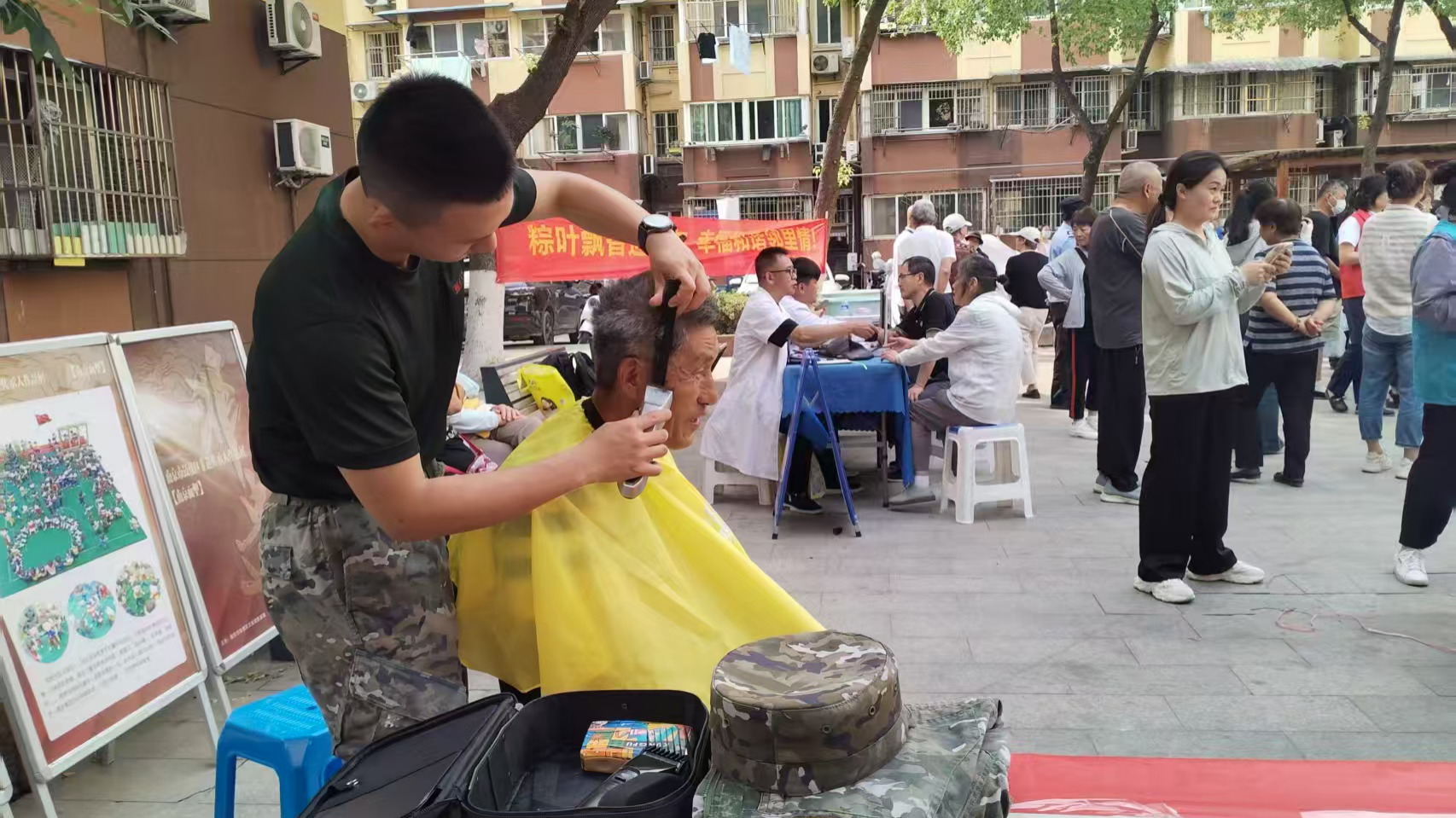 鼓楼区在鼓楼区金陵新九村东院广场上举行端午欢乐游园会,官兵代表们与居民共同感受传统节日的独特魅力。现场部队官兵代表还为社区居民提供了义务理发服务。