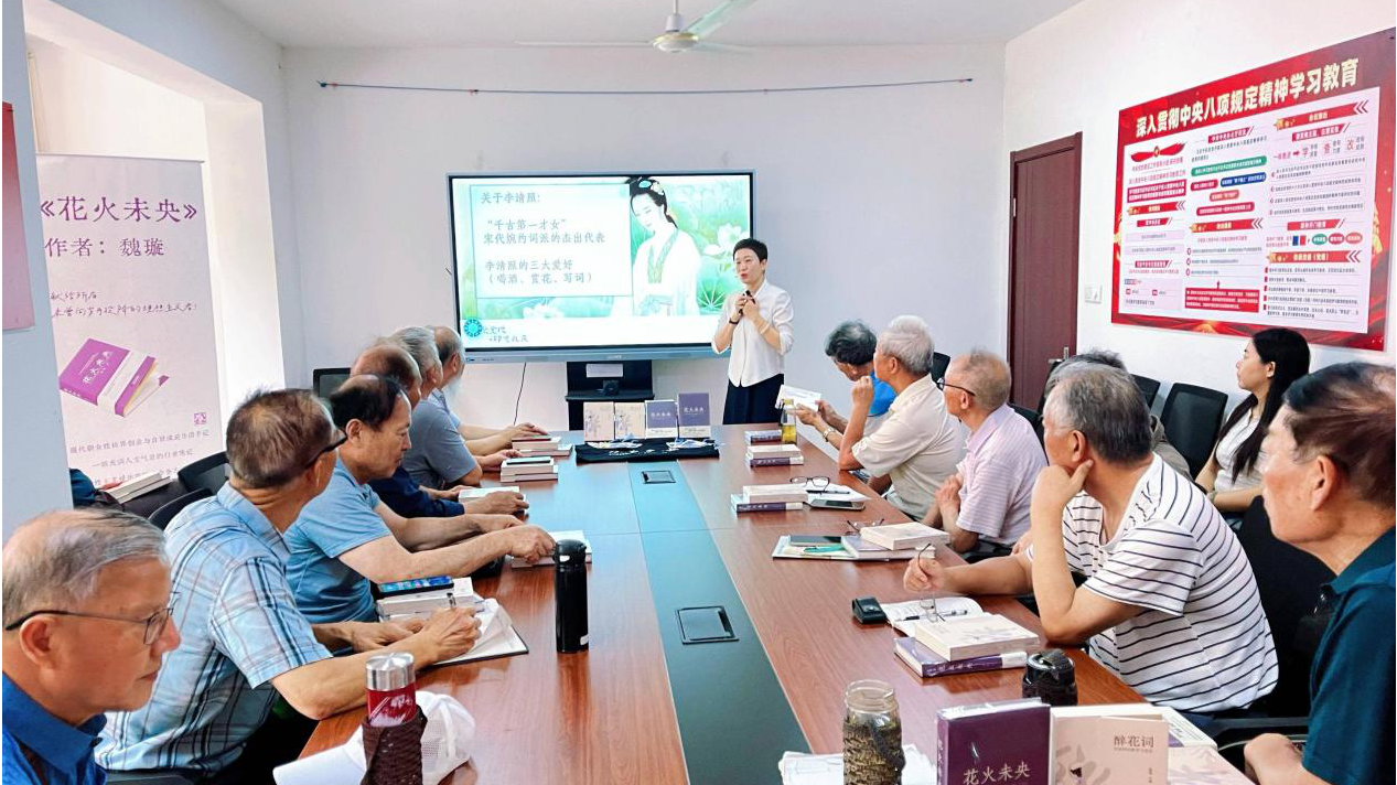 7月16日上午,鼓楼区军休九所举行了一场题为“以笔为炬,照见生命华章”的读书分享会。活动特邀我市作家魏璇,携其著作《醉花词——李清照的繁华与悲凉》与《花火未央》,为离退休老干部奉上了一场贯通古今、启迪心灵的文化盛宴。活动中,多位老干部结合自身经历,分享了自己的家国情怀与精神感悟,热情交流现场读书会心得。