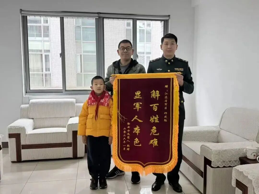 近日,南京市民顾海磊手持一面锦旗,来到江苏省军区,向省军区直属分队某队分队长邱成魁表达诚挚谢意。