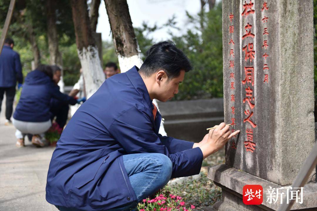 在雨花台烈士陵园,仪式结束后,志愿者们清扫陵园环境、擦拭烈士墓碑,并为碑文描红,用实际行动守护烈士安息之地。在浦口革命烈士纪念碑,志愿者们携手中小学生代表共同前往,学生们用稚嫩却坚定的声音讲述了自己对红色精神的理解与传承:“先烈用热血换来和平,我们当以少年朝气承接遗志,把爱国情转化为勤学实干的行动力。”