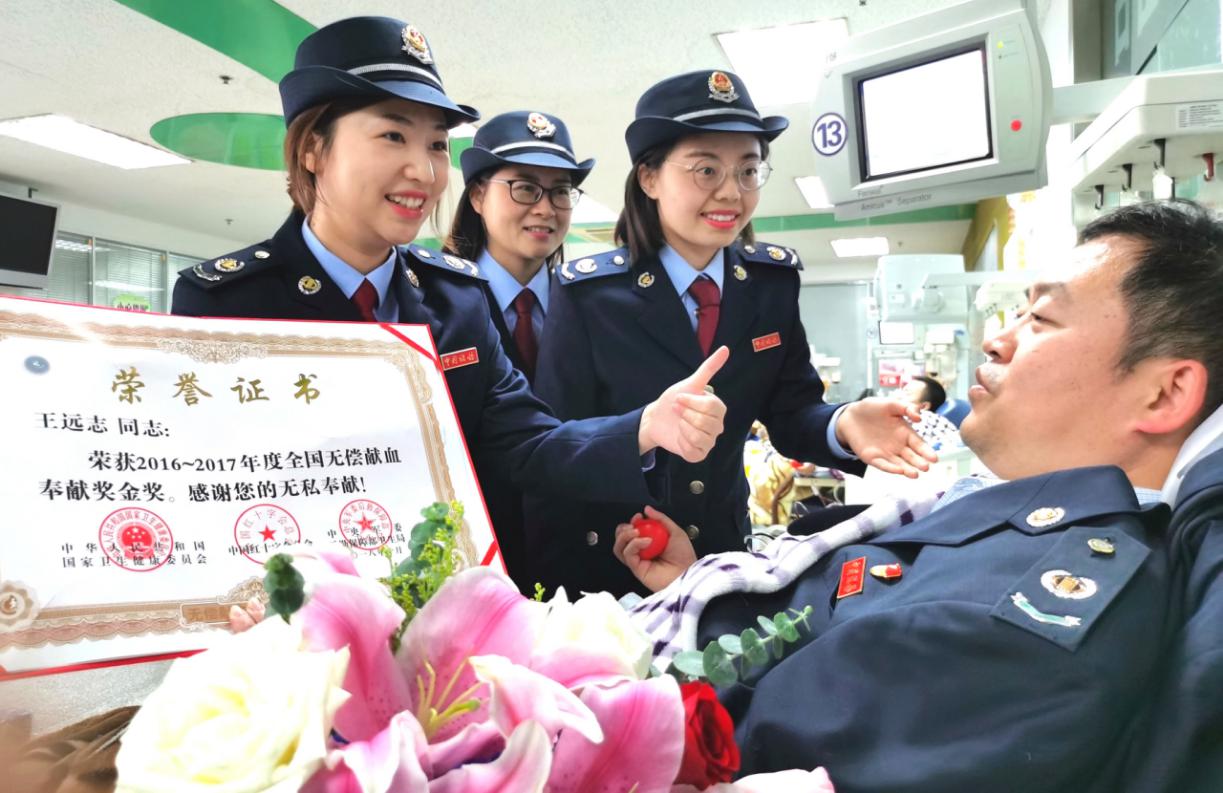 2006年,时任江苏省武警总队某部政治指导员的王远志偶然看到无偿献血的公益广告。看着镜头里那双渴望救助的眼睛,他突然意识到,自己有能力帮助他们。那个周六,王远志前往献血车,卷起袖子,献上了他生平第一个“400cc”,从此,他成为一位定期无偿献血者,而且这一坚持就是19个年头。当他得知一个健康的成年人每月可捐献一个单位的血小板后,王远志又开始定期捐献血小板,成了血液中心的“常客”。就这样,每两个星期去一次血液中心奉献爱心,成了他生活的一部分。王远志给自己定下规矩,“只要身体健康,只要符合献血标准,就将献血行动一直坚持下去”,在他的倡议和感召下,越来越多的战士加入了献血者、宣传者的行列。现如今,每年的“八一”建军节,血液中心都会到江苏省武警总队大院集中采血,向社会献出人民子弟兵的热血和爱心。王远志到税务系统工作后,不仅将献血善举一直保持下去,还积极发动身边人加入到献血队伍中来,税务战线越来越多的干部职工从点赞者,变成了实实在在的支持者。